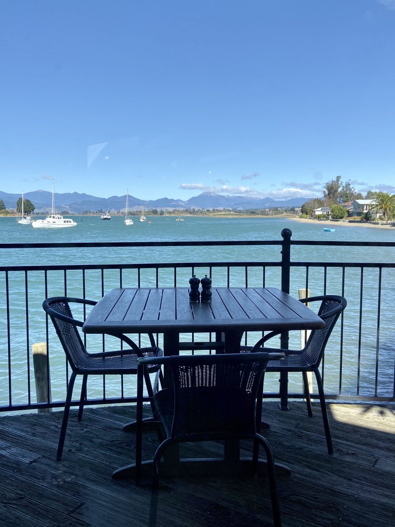 Apple Shed Kitchen, Restaurant & Bar only a scenic 35 minute drive from Nelson, and located over the water on Māpua Wharf, with unrivalled views across the Waimea Inlet.