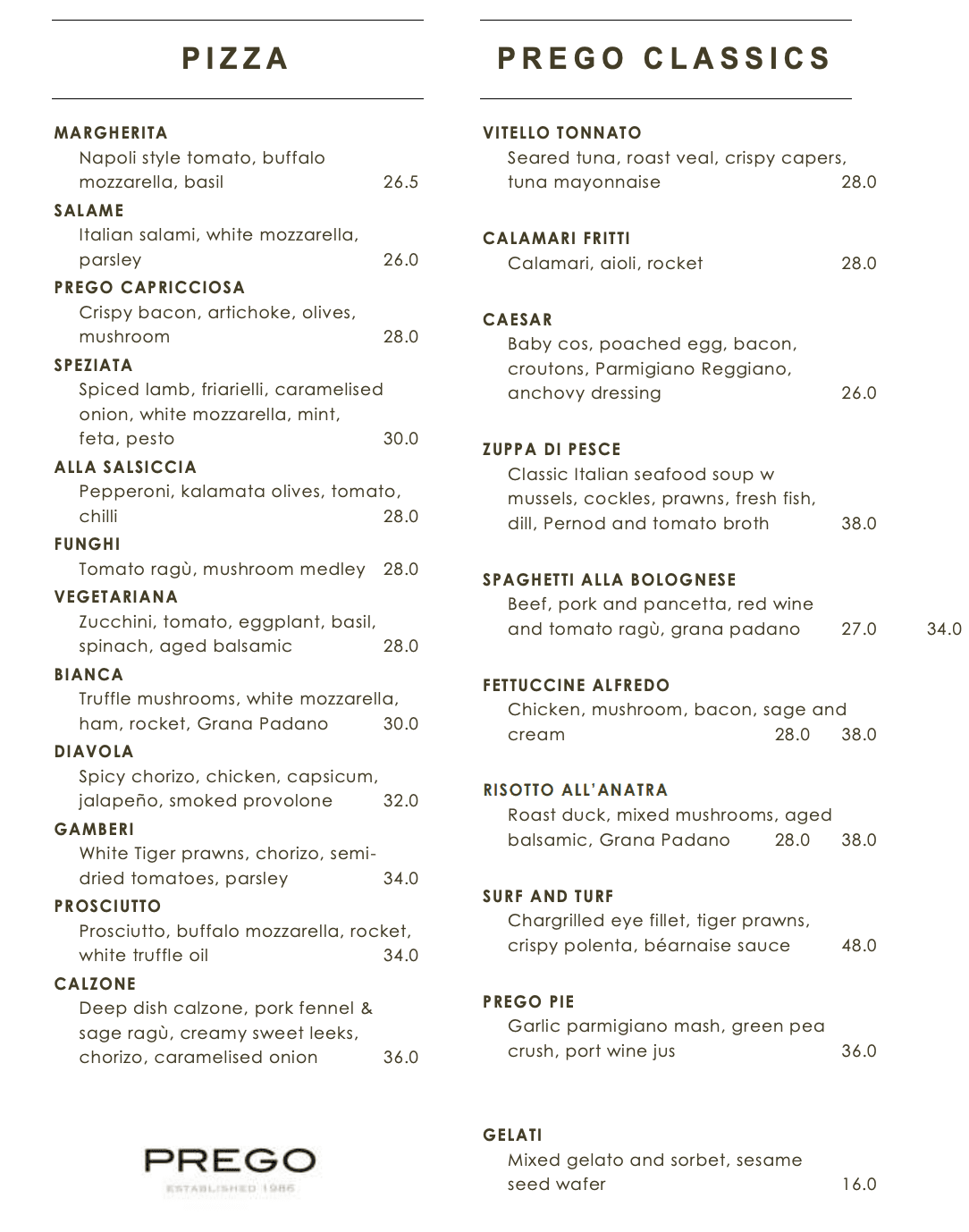 - Prego Menu